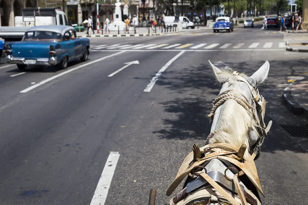 The options from getting around Habana are pretty varied but there are 2 big tours being pushed: One on a horse and cart and the other as mentioned above is the convertible vintage car. Looking for a way to beat the heat for a while, we grabbed a horse ride on our second day to see a little further afield than we walked on day 1.