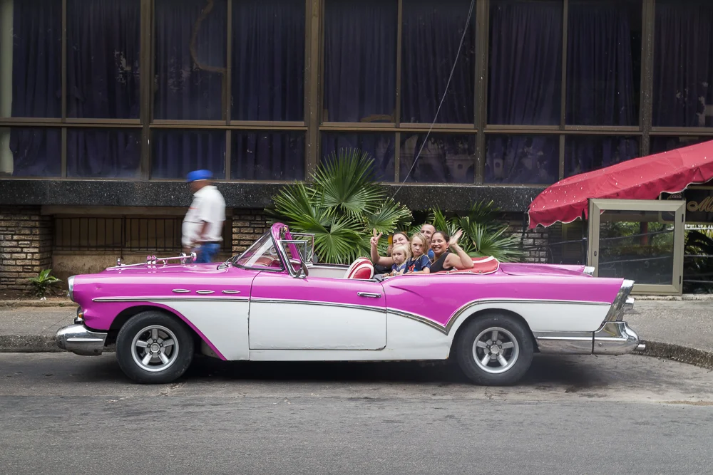 Whilst the horses were great fun, it felt a little remiss to come to Habana and not take a vintage convertible at least once. So on the way back from visiting the Hotel National, we found ourselves a nice pink convertible to taxi us back home.
