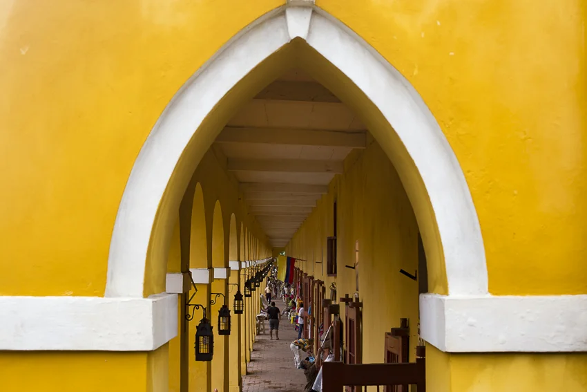 We started our time in Cartagena like many do. Wandering the streets. We were staying in the old historic centre so it didn't take us long to find part of the wall. From there we walked on top of the wall until we arrived at the old dungeons. They sit under one of the largest sections of wall and today serve as handicraft and souvenir stores.
