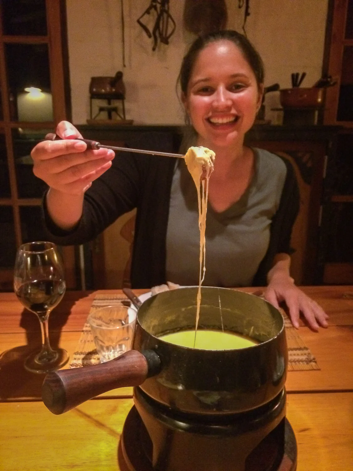 But when they were serving up Fondu from a local cheese we weren't complaining too much. The rain spoiled some of the plans to go horse riding but we found some gaps in the weather to explore the local farms on the way into the nearby "Swiss" town.