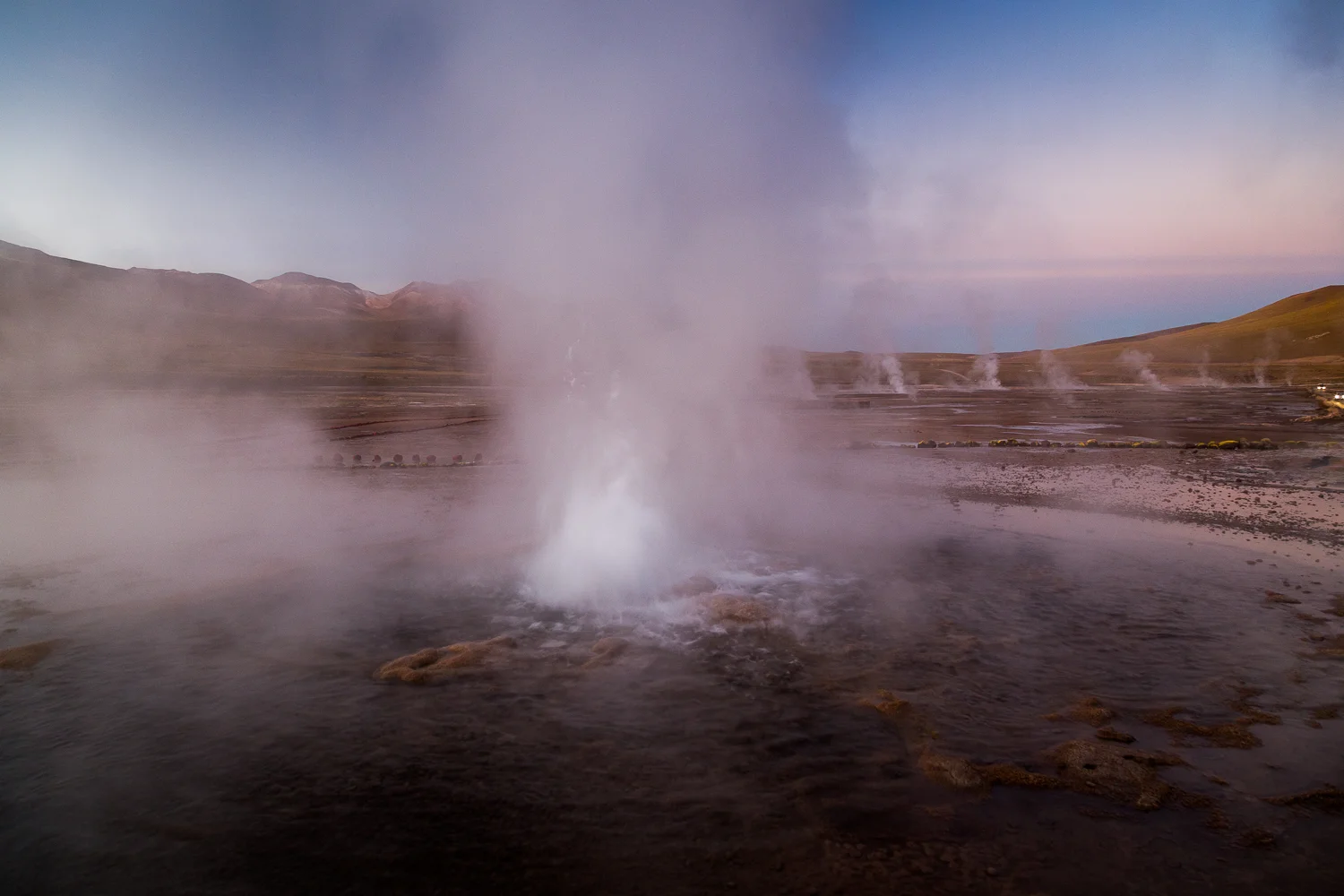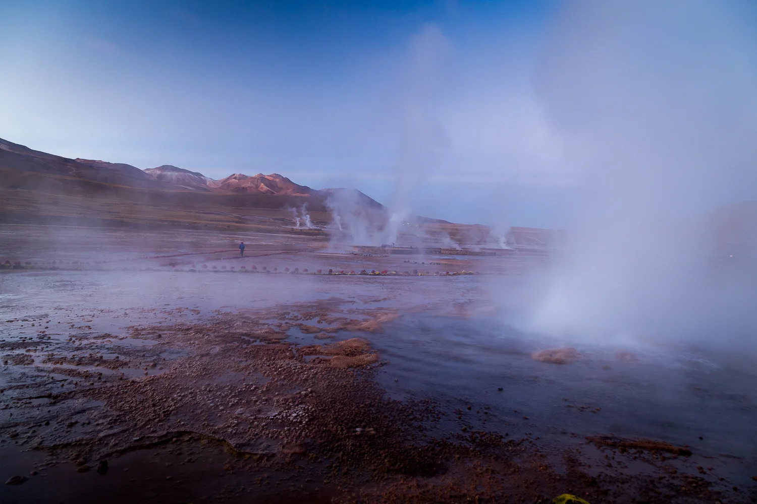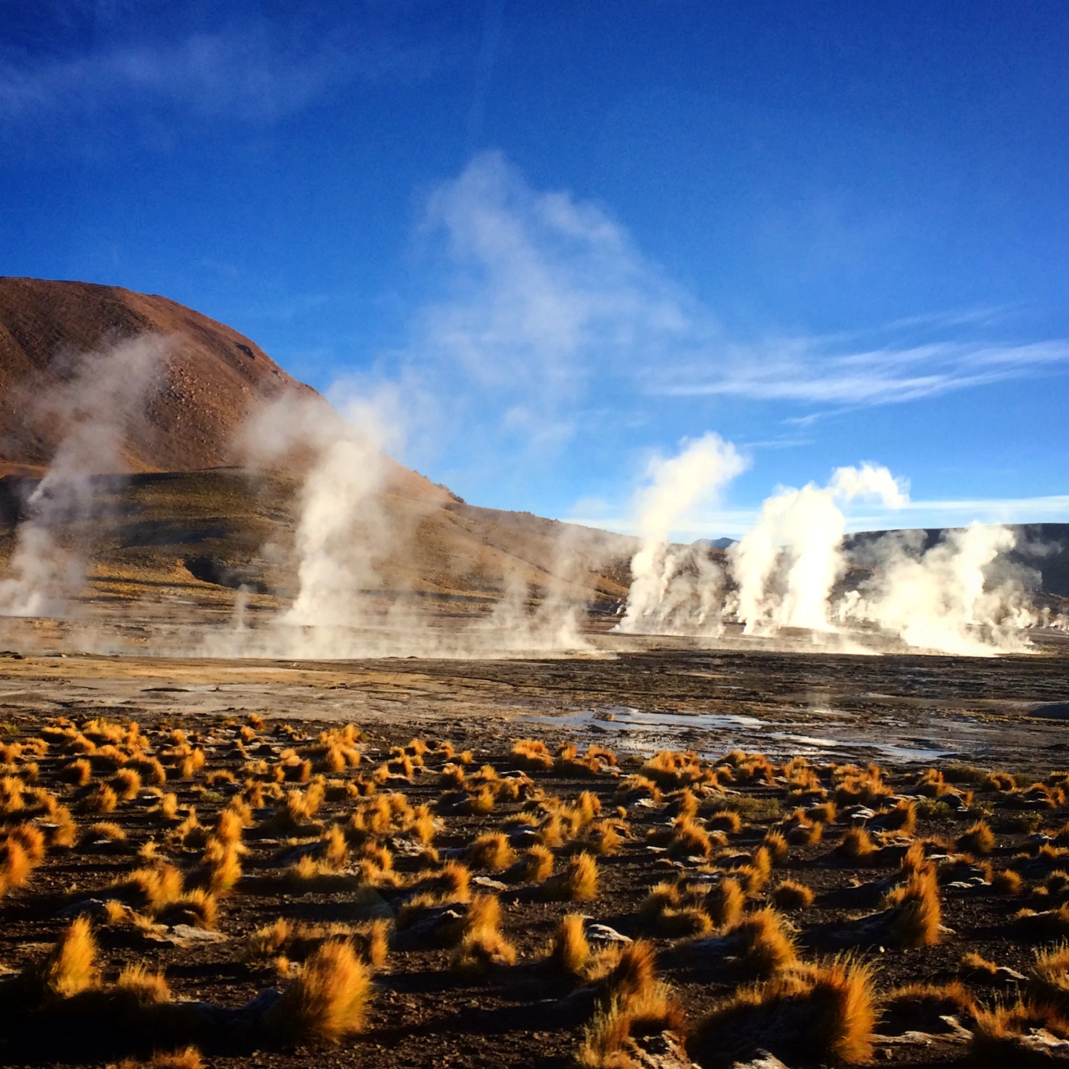 Unfortunately we couldn't stay out all night looking at the stars because the next morning we were up at 4am to hunt the local Geysers. Leaving San Pedro, the bus went up to 4500m where we stopped to pay an entrance fee before heading further into the mountain to see the waking geysers as the sun started to pierce the horizon.