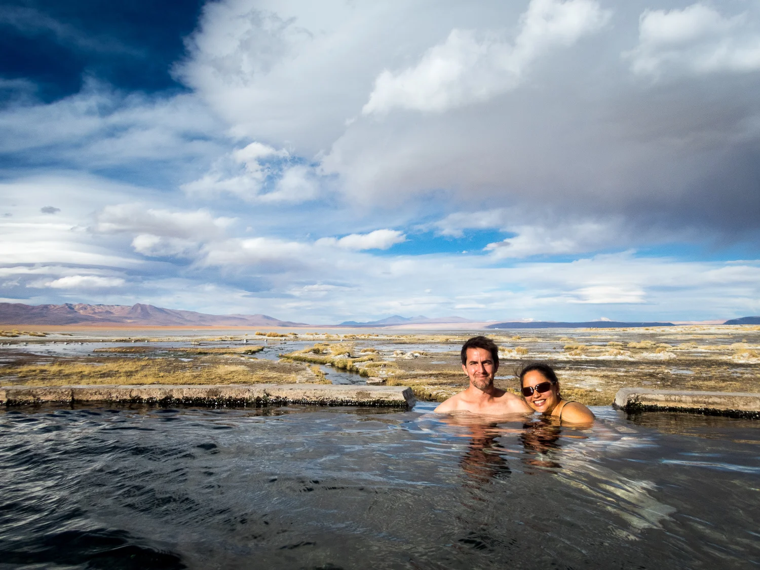 This first day involved mostly a lot of driving with some short stops along the way. Before arriving towards some lakes and our night accommodation, there was a chance for a dip in the local thermal springs and we were on it. Just the 2 of us, and for a short time one other couple. Not a bad view really.