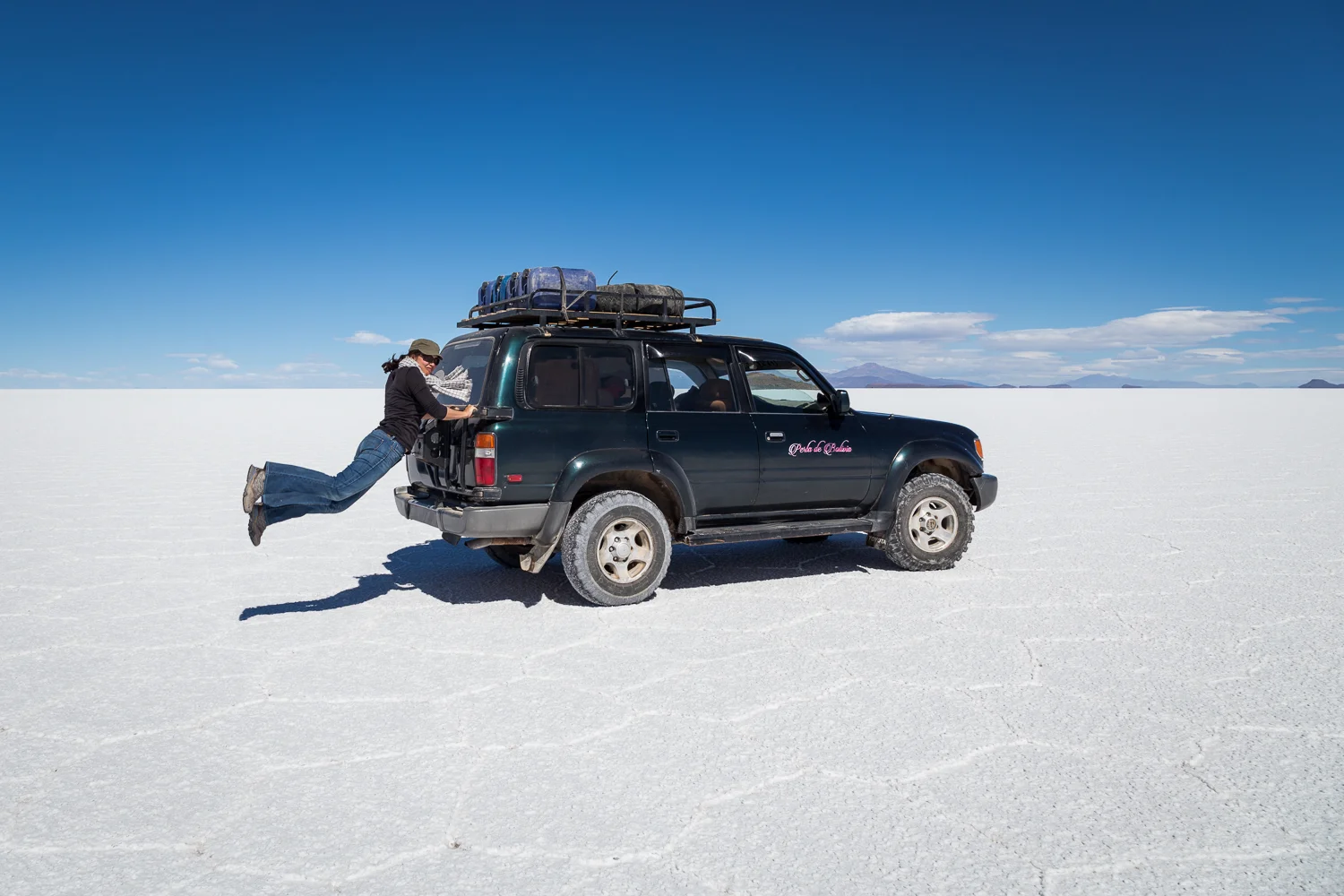 Day 3. This is what we excited about. This was the day to explore the Uyuni Salt flats. I'm not going to describe this place more than to say its the worlds biggest salt flat, set at over 3800m. We were here in the dry season so there are no photos of the famous endless reflections but given it was dry we could get out to some of the islands on the salt flats, and of course we did the obligatory distorted perspective photos.