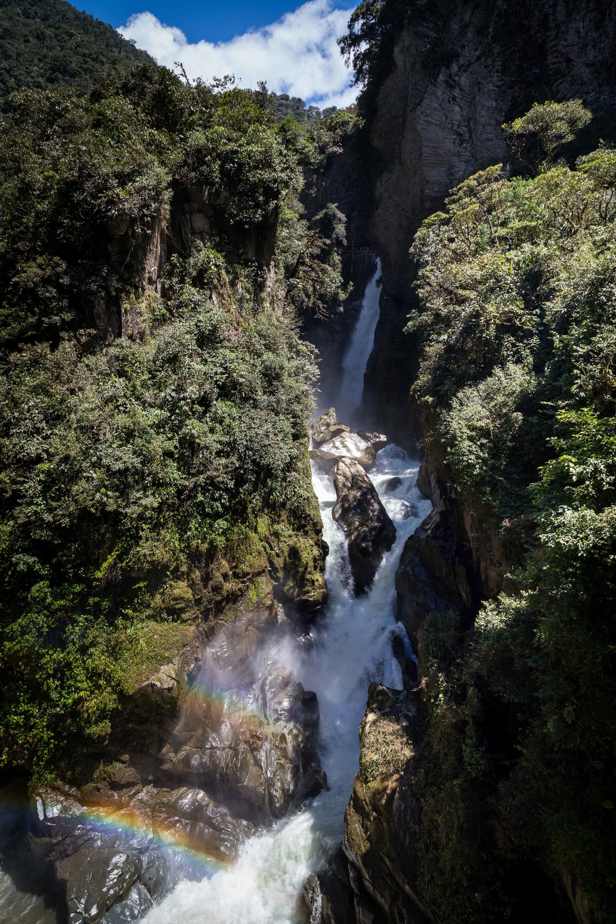 This little town is nestled in between mountains, cliffs, and waterfalls in the cloud forest at around 2800m. It has become an adventure activity capital of sorts for Ecuadorians and other tourists where you can white water raft, zipline, bungy jump, skydive, hire quad bikes, and swing off bridges.