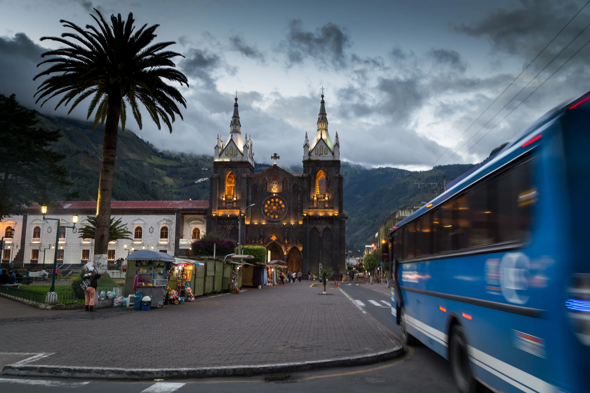 With on final evening in Baños we went out to take some photos of the main square church before dinner. This was our last stop on the Volcano Run before heading to the coast and we would be up early the following day to catch a triplet of buses.