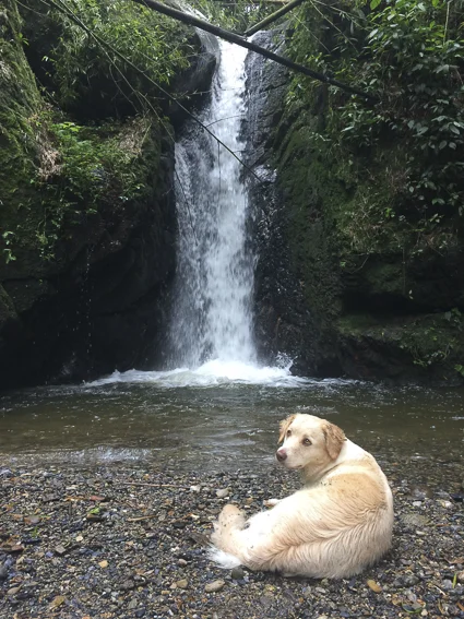 Now we were staying a little out of Manizales towards some of the smaller communities. Partly because we wanted to escape the city and partly for the views. It also meant that there were some nice walks straight off the back of the property through jungle and coffee plantations towards rivers and waterfalls. So on New years day we headed to the local waterfall, with Cielo the hostel owners dog, and though we got pretty muddy on the way, the waterfall was totally worth it. And given we had it all to our self, a cheeky skinny dip was in order.