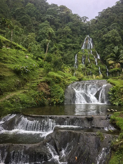 We spent the next couple of days doing some more hiking in the local area, visiting nature reserves and coffee farms, and generally relaxing. We figured one way to definitely get our relax on was to visit another hot spring. And this one had a massive waterfall to enjoy as well.